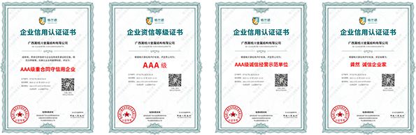 廣西冀桂川金屬結(jié)構有限公司始終恪守“誠實經(jīng)營、質(zhì)量保障、信譽至上、價格合理、合作共贏”的宗旨,嚴格按照ISO質(zhì)量體系認證標準,為客戶提供系統(tǒng)的技術支持和施工建議,有效的為客戶解決難題,竭誠為客戶提供更優(yōu)質(zhì)滿意的工程。